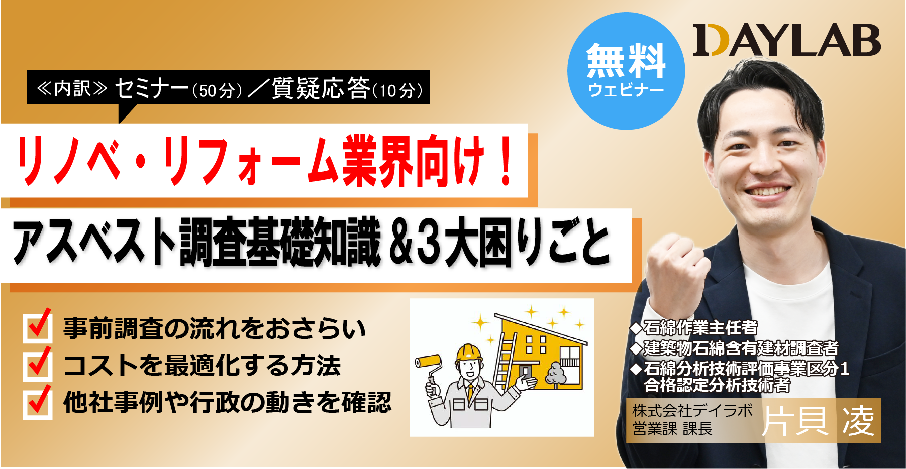 本ウェビナーでは、アスベスト調査・分析の専門家が、基本的な調査の流れから、コストを最適化するための具体的なポイントまで徹底解説。調査を適切に行うことで、不要な費用を抑えながら法令遵守を実現するためのノウハウをお伝えします。