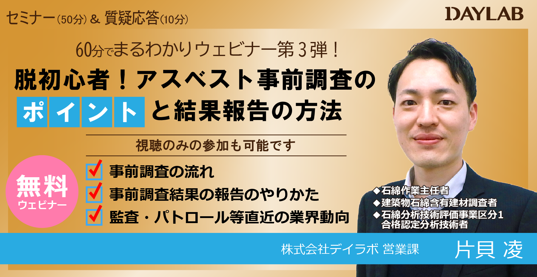 アスベスト分析機関として多くのお客様のお悩みを伺ってきた私たちが、アスベスト事前調査の全体像や事例をご説明します。
